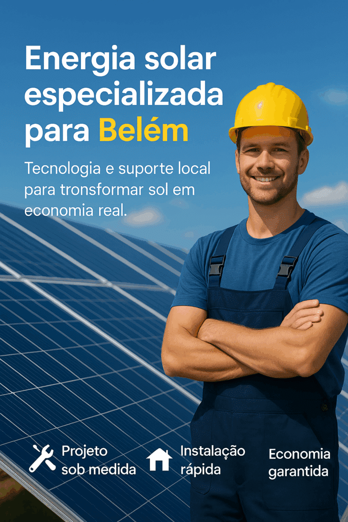 A SolarSix é especialista em energia solar em Belém e em todo o Pará, oferecendo soluções completas em projeto, instalação e manutenção de sistemas fotovoltaicos para residências, comércios e áreas rurais. Com equipe própria, rápida e qualificada, garantimos sistemas de alta performance que reduzem sua conta de luz em até 80%. Transforme a luz do sol em economia real com quem já ajudou dezenas de clientes a gerar sua própria energia com garantia estendida, parcelamento facilitado e atendimento completo. Solicite sua simulação gratuita agora.